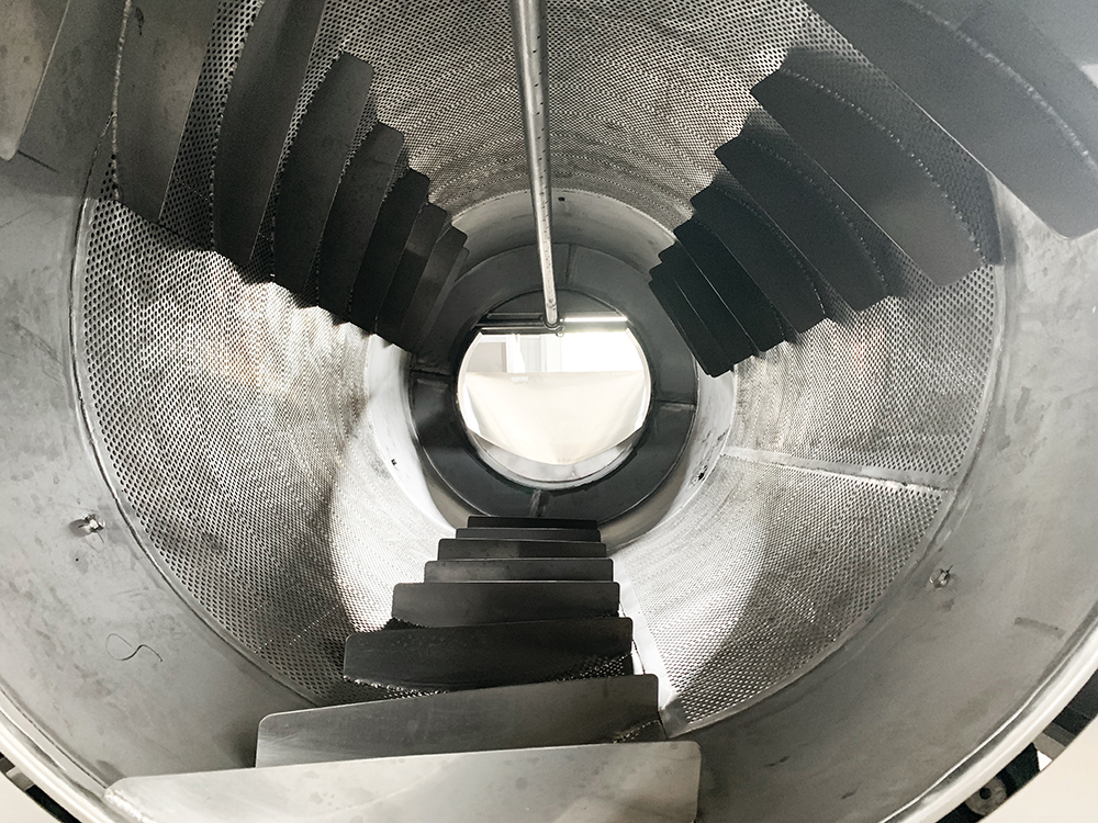 物料由進(jìn)料斗送入,啟動(dòng)高壓水泵、轉(zhuǎn)動(dòng)筒體,物料在被筒體內(nèi)螺旋板推進(jìn)的同時(shí)進(jìn)行漂洗,高壓水沖洗,達(dá)到清洗的效果。